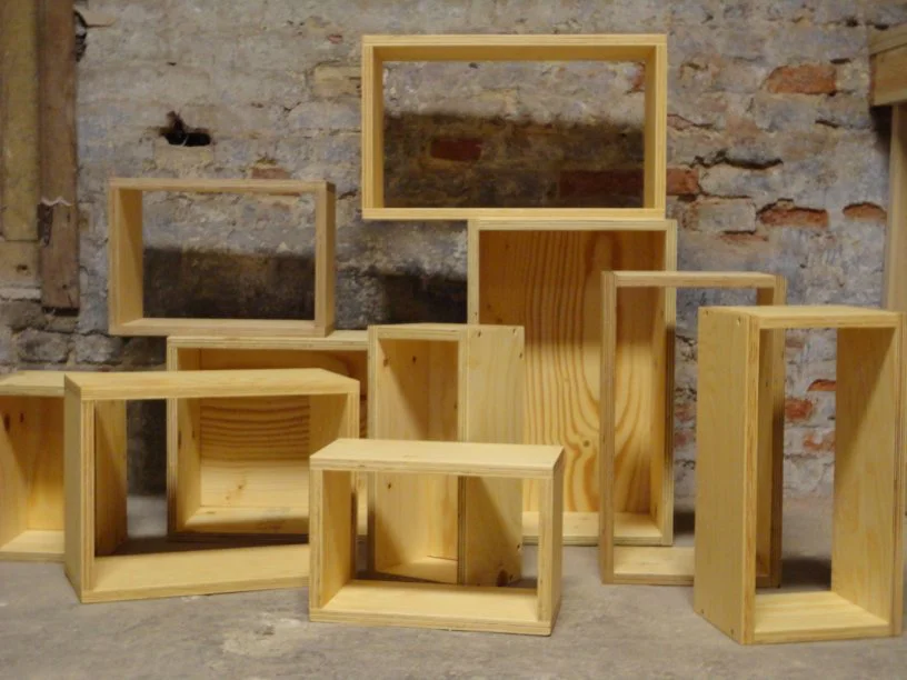Andere ideeën ontstonden vanuit de creatieve zoektocht naar mogelijkheden om resten hout uit grote projecten niet verloren te laten gaan als afvalhout, maar er nog een nuttige, en liefst ook esthetische , bestemming aan te geven. De Kistenkast-modules, de op maat maakbare lapjesplaten van Bladhout, en de Planchet zelfschroefstoel vormen hier mooie voorbeelden van.
